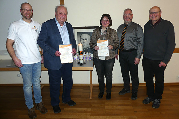Mit dem Ehrenzeichen der Kolpingfamilien im Kolpingwerk Deutschland würdigte Diözesansekretär Markus Neft, stellvertretend für Diözesanvorsitzenden Martin König und Diözesanpräses Karl-Dieter Schmidt, bei einer Feierstunde im Jugend- und Pfarrheim Beratzhausen ihr Engagement.