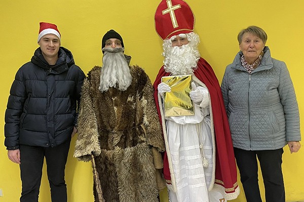 Seit zwanzig Jahren ist der letzte Besuch beim Präses Wolfgang Dietz, da er an diesem Tag seinen Geburtstag feiert. Der Nikolaus hat natürlich auch für ihn ein Gedicht parat. Der Fahrer Maximilian Roßmann und die „Managerin“ der Aktion Erika Hammerer waren auch eingeladen.