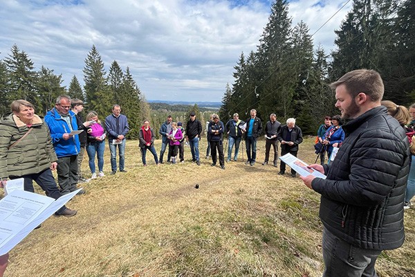 Einen Kreuzweg ganz anderer Art hat die Kolpingsfamilie Schönwald angeboten und der Erfolg gab recht: 40 Kinder, Jugendliche und Erwachsene sind der Einladung gefolgt und haben auf dem Weg vom Fuß des Großen Kornbergs bis zum Gipfel an 14 Stationen dem Leiden und Sterben Jesu gedacht.